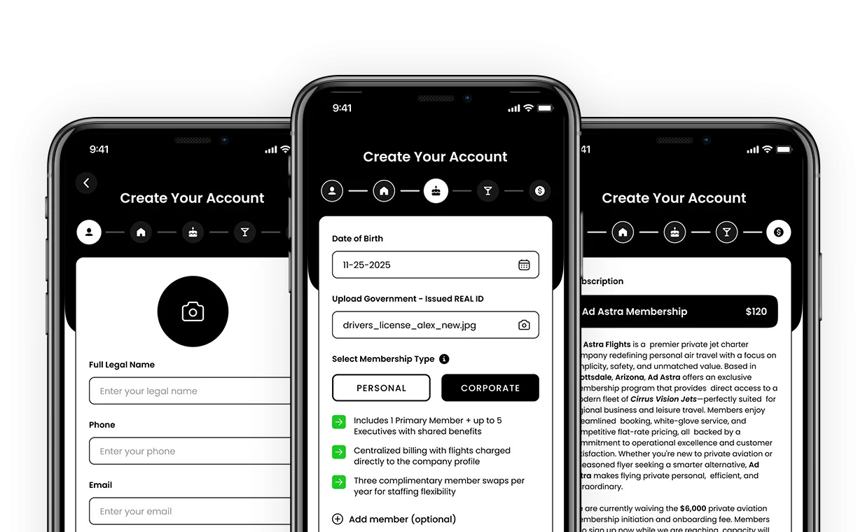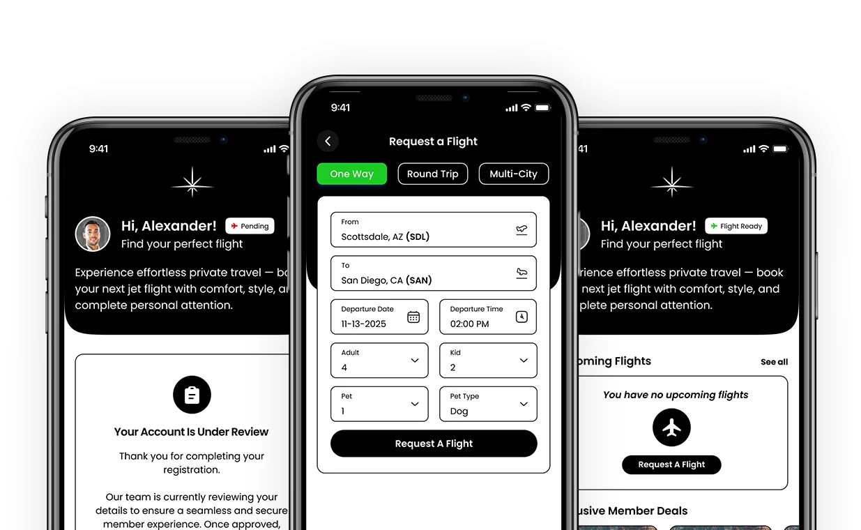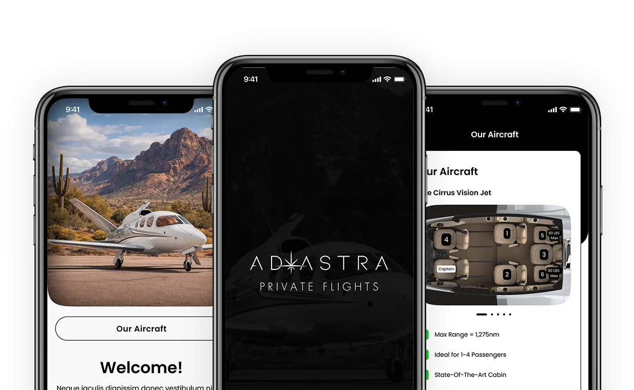Net-Craft designed and developed a custom mobile application for AdAstra Flights, built to streamline private flight requests and enhance the member experience.
