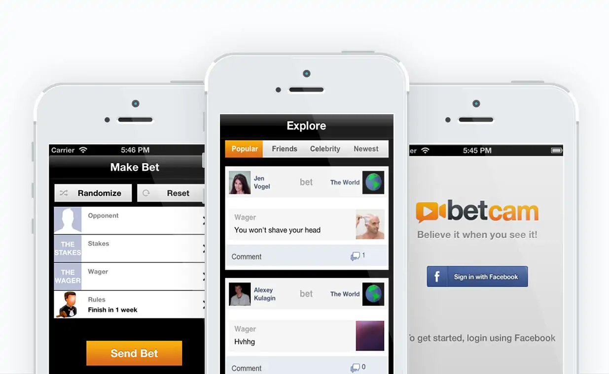BetCam is a social betting app for friends on the iPhone. Friends can enter their own stakes and wagers or use any of the pre-defined bets. Once a bet is complete, friends will post their photo or video to prove the bet was done. Net-Craft provided custom app design and development servives.