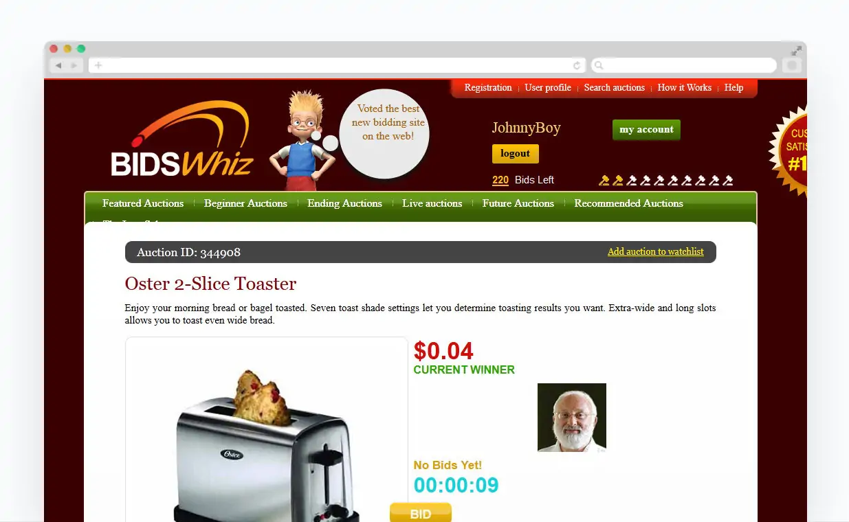 BidsWhiz is reputable quick-paced auction website that allows users to score deals on many products at great prices.