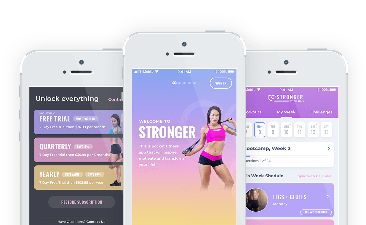 The Stronger app was created for popular Fitness influencer and NASM certified personal trainer Sia Cooper. Sia connects with over 1.5 million followers via her social media channels. Sia wanted an Apple and Android app that would allow her fans to follow her daily exercise programs.