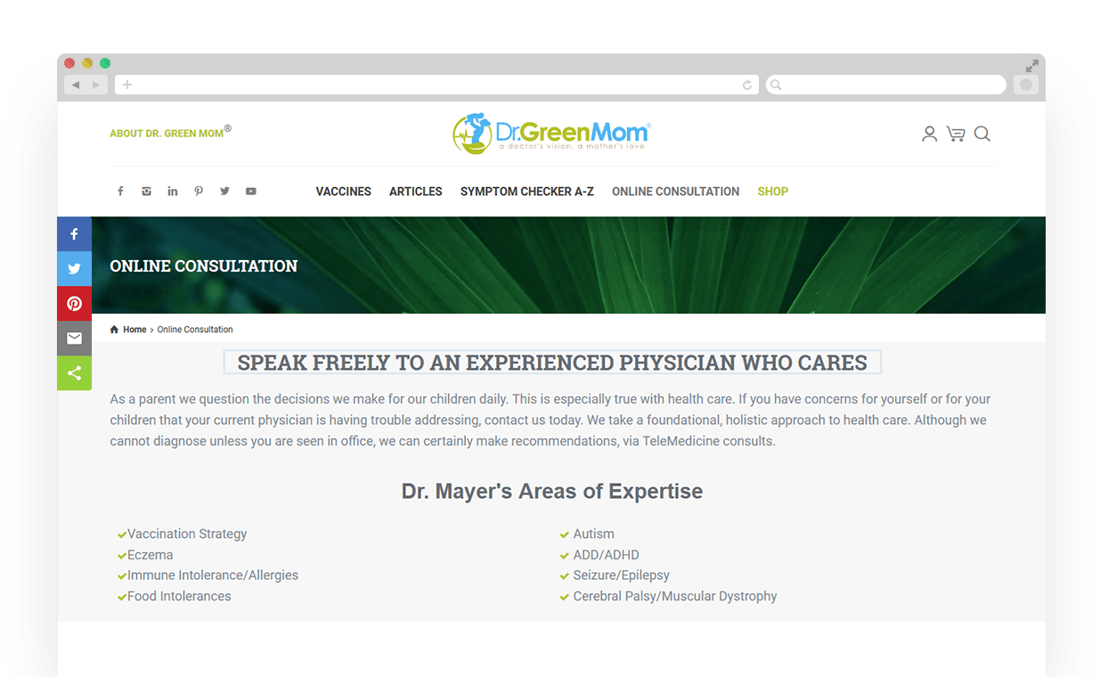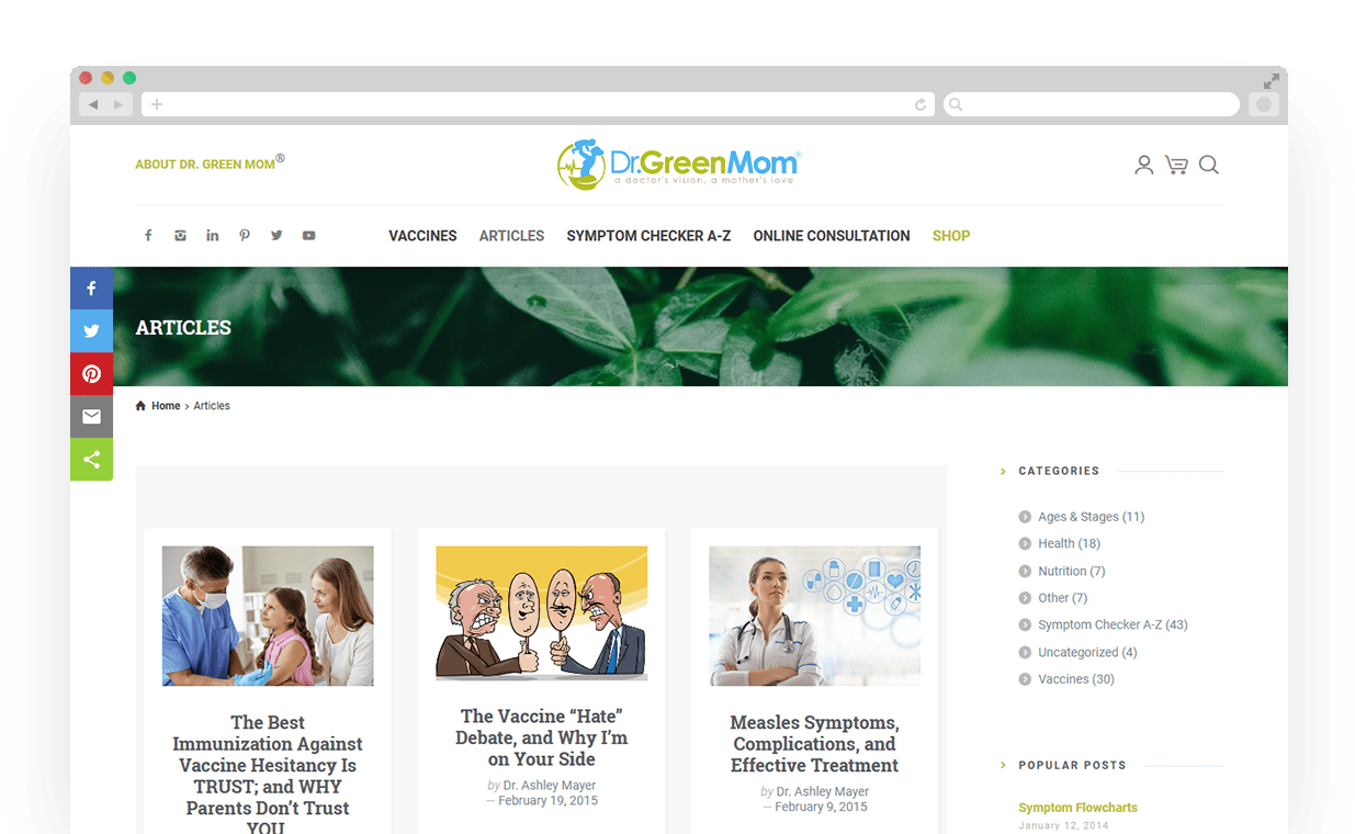 Dr. Ashley Mayer created Dr.GreenMom as a resource to help those who have questions about the impact of vaccines on children.