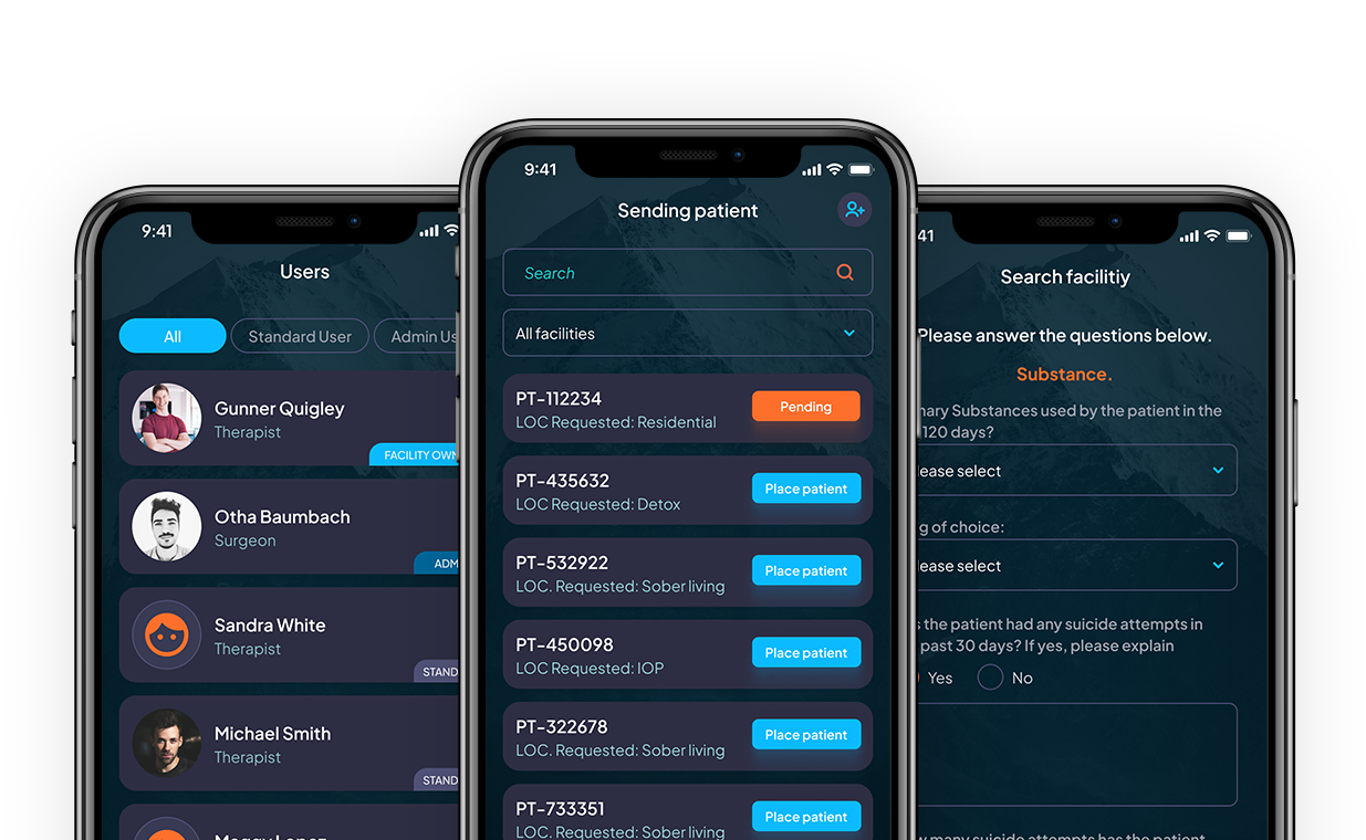 Drug Rehab Finder is a custom app developed for the Apple and Android platforms that provides a comprehensive solution for locating and accessing all levels of care for substance use treatment. Whether a user is seeking help for themselves, a loved one, or a facility looking to streamline referrals, the Drug Rehab Finder app offers a seamless and user-friendly experience to connect with the right resources.
