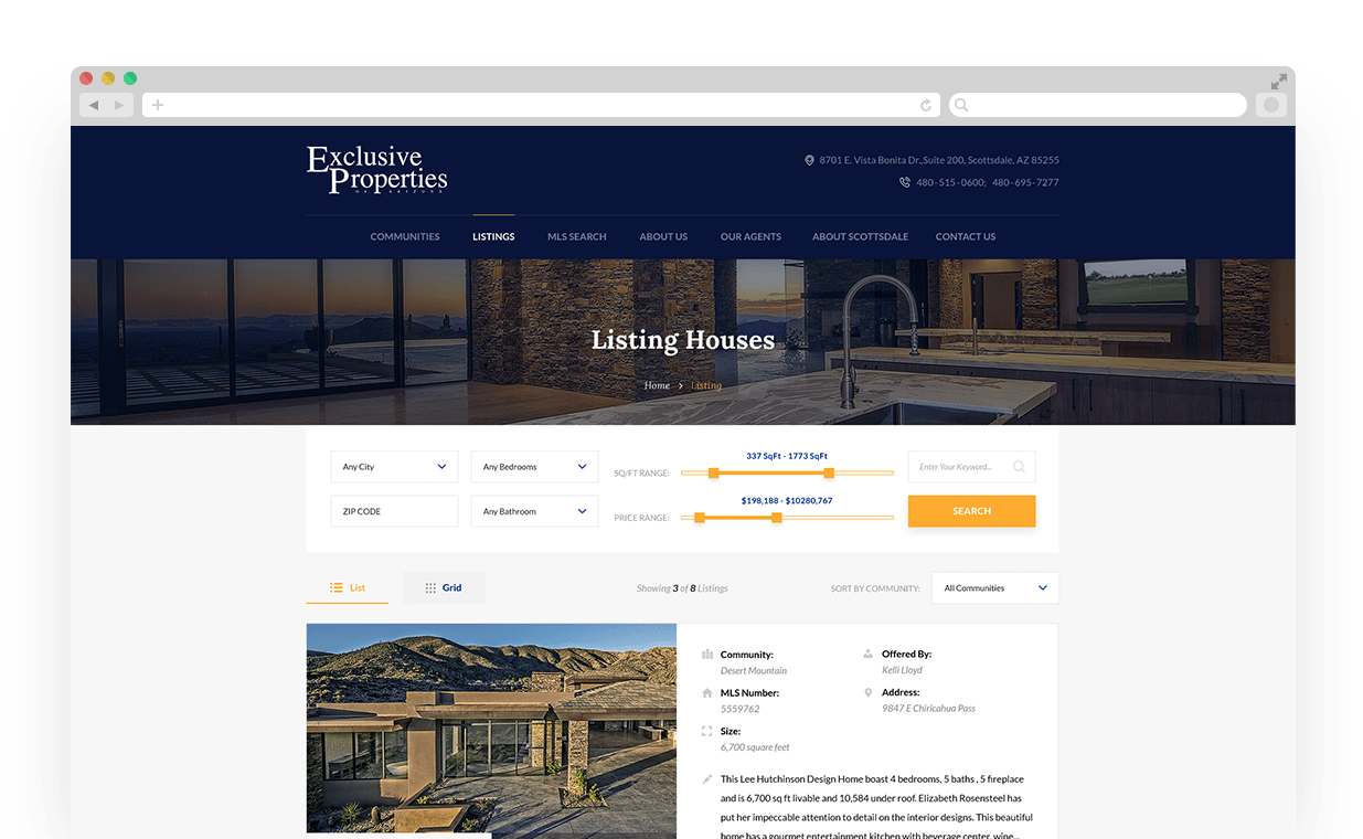 Exclusive Properties is a real-estate firm specializing in fine homes and golf properties in North Scottsdale, Arizona.