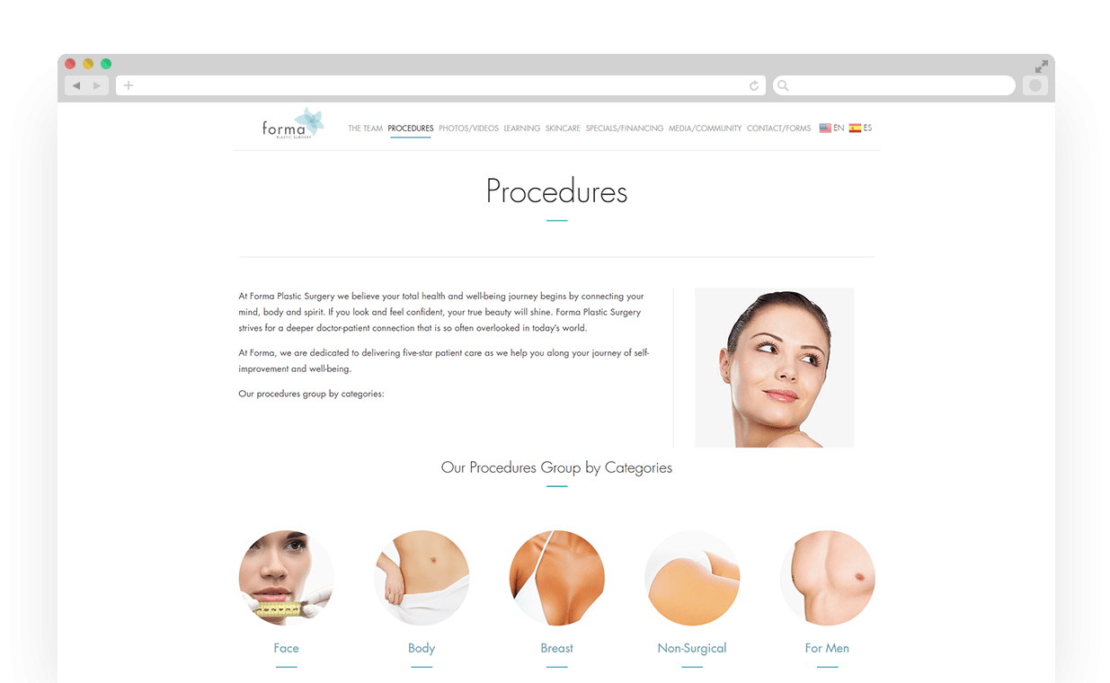 Scottsdale based Forma Plastic Surgery is a premier provider of plastic surgery services. This is the second web site we have developed for Forma. The site offers information about the services offerred, before and after pictures, as well as educational videos. A web based CMS allows Forma to create and edit content themselves 24x7x365.
