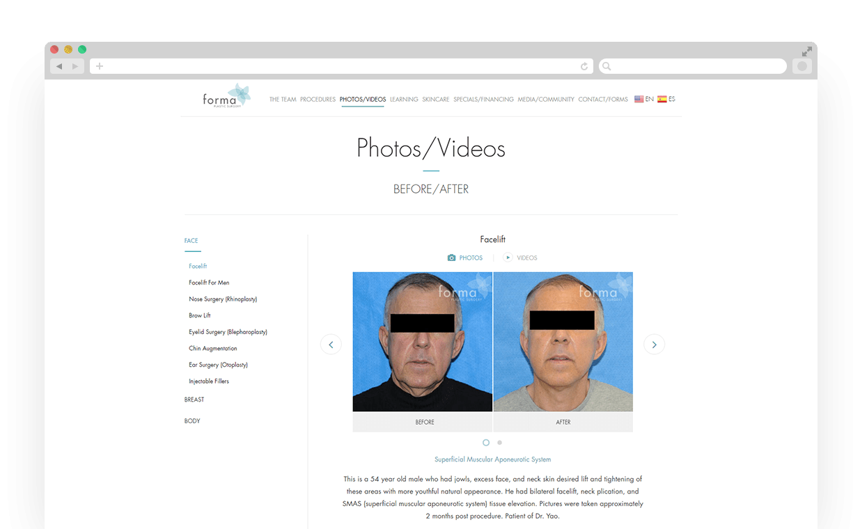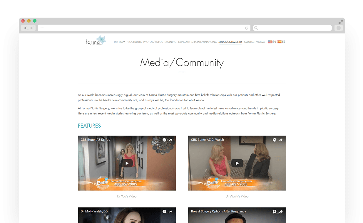 Scottsdale based Forma Plastic Surgery is a premier provider of plastic surgery services. This is the second web site we have developed for Forma. The site offers information about the services offerred, before and after pictures, as well as educational videos. A web based CMS allows Forma to create and edit content themselves 24x7x365.