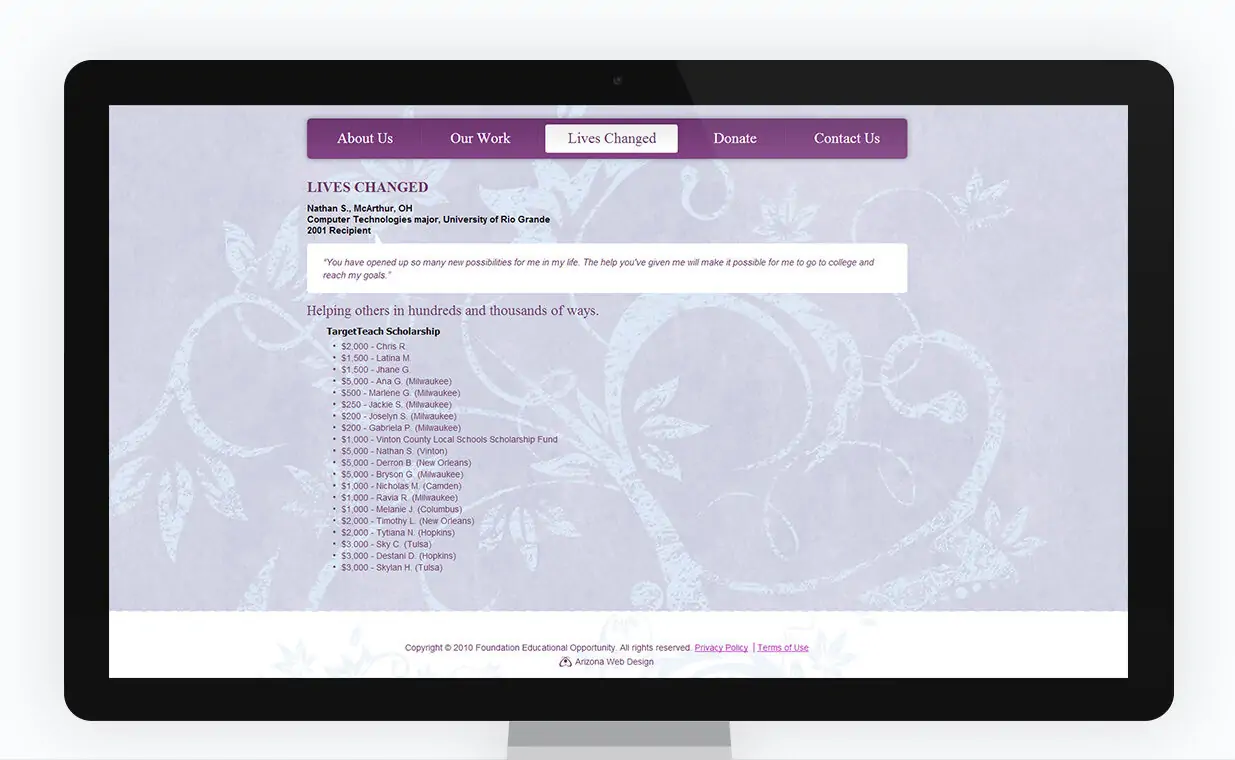 A private and charitable foundation, the Foundation for Educational Opportunity is committed to improving the futures and lives of children who are disadvantaged throughout the United States.