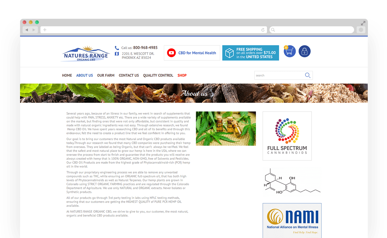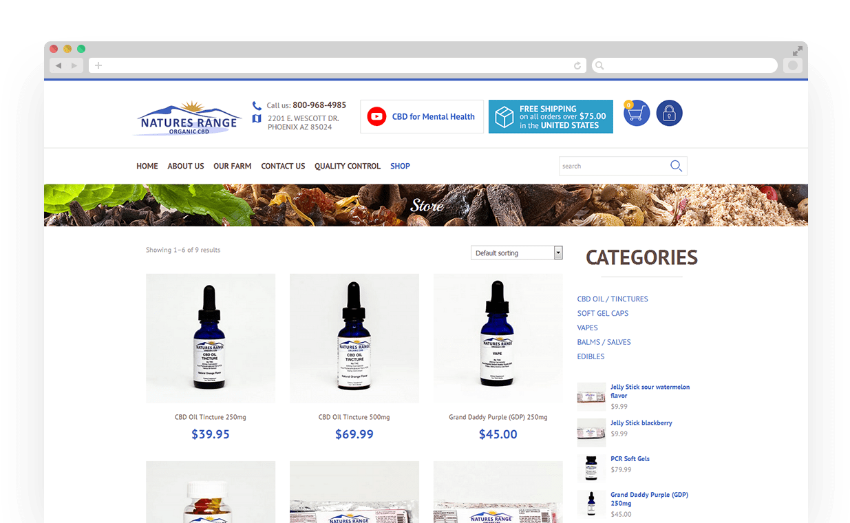 Natures Range Organic sells some of the finest organic CBD products available today. This online store is built using the WooCommerce eCommerce engine and is fully managed by an easy-to-use Content Management System. A responsive mobile version is also present for mobile phones and tablets.