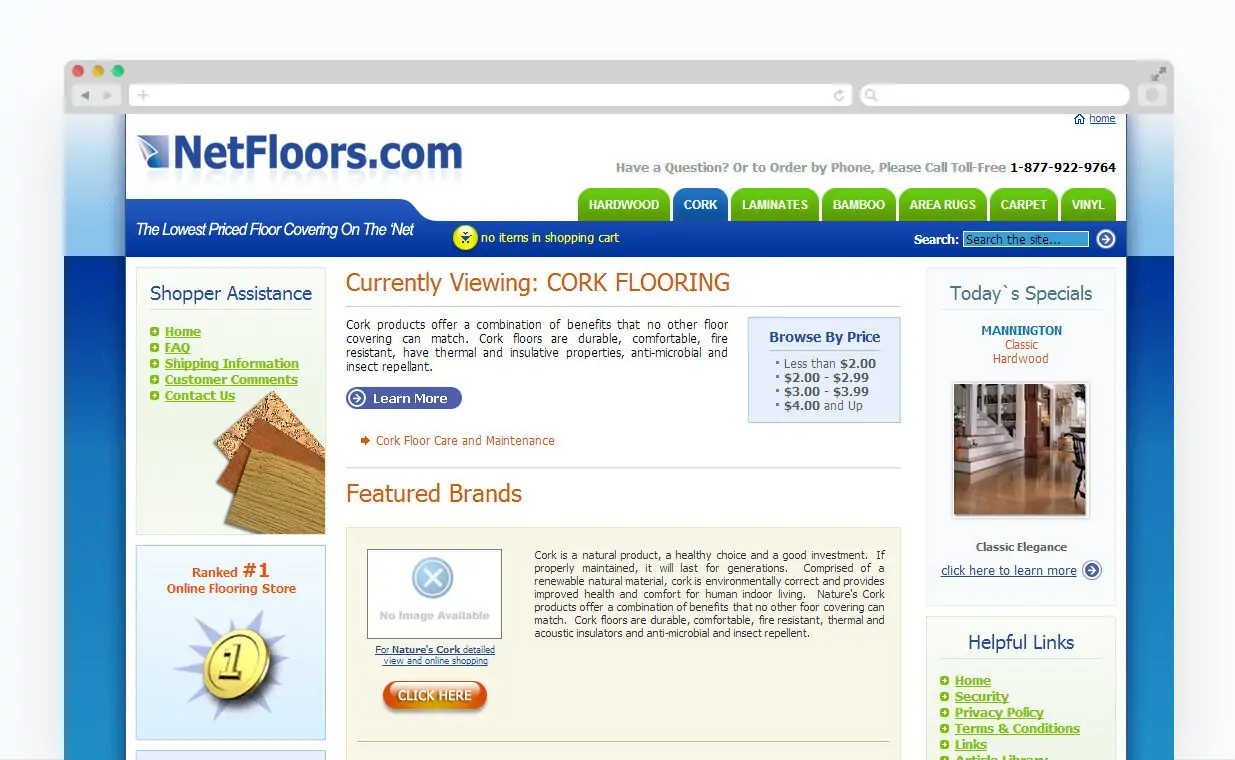 E-commerce store offering a wide selection of low price floor covering online. NetFloors.com is based out of Scottsdale, Arizona.