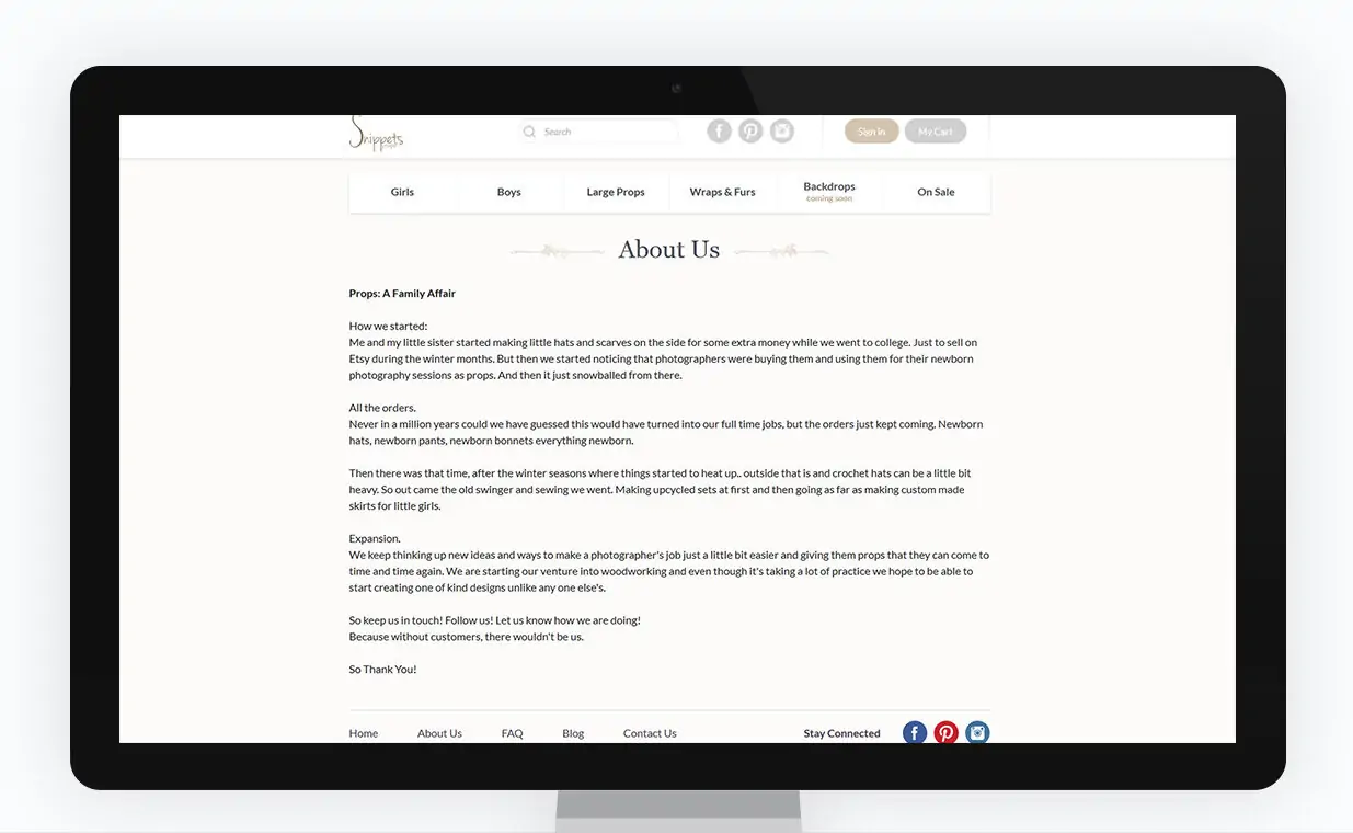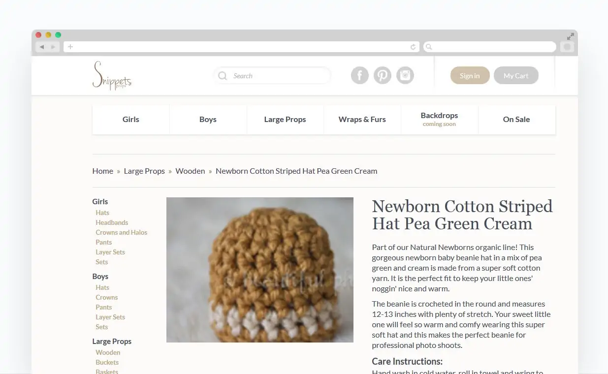 Snippets creates adorable handmade clothing for newborns including hats, bonnets, pants and more. NetCraft designed an easy-to-use and fully functional eCommerce store to support Snippets rapidly expanding sales volume.