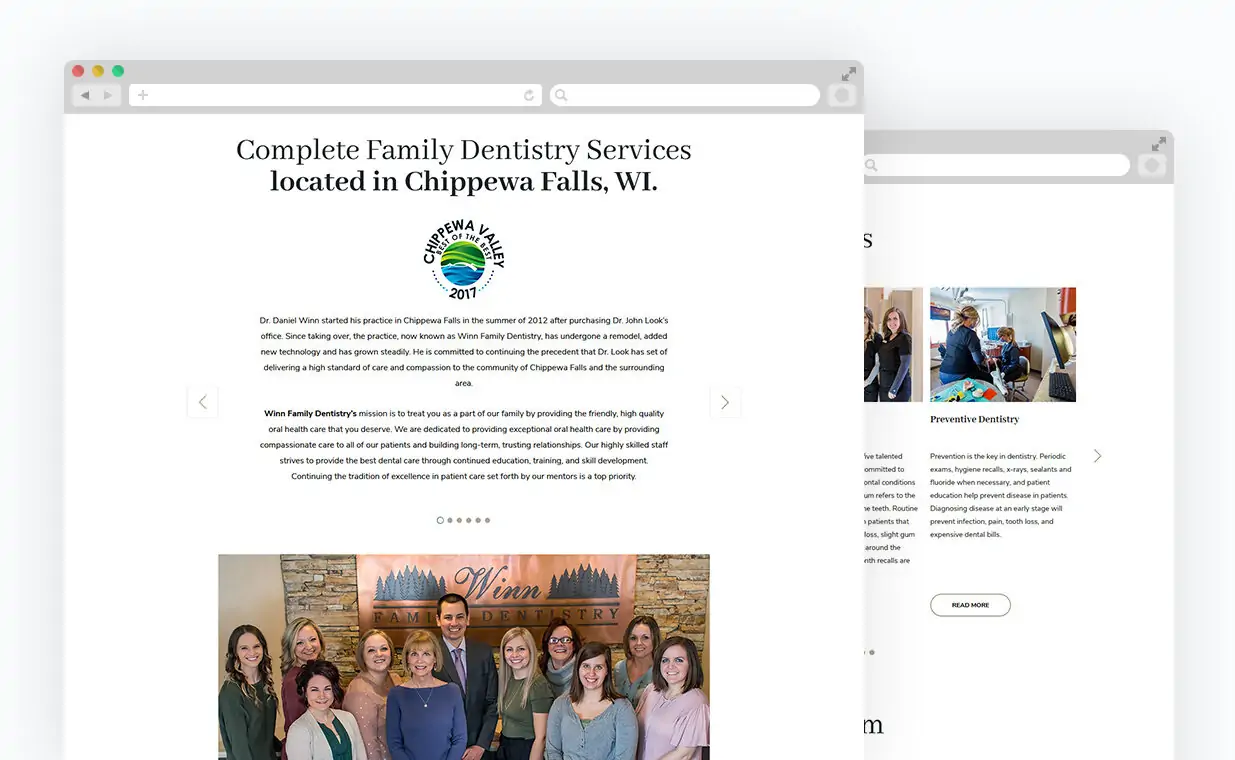 Winn Family Dentistry is located in beautiful Chippewa Falls, Wisconsin. Their mission is to provide friendly, high quality oral health care. Winn Family Dentistry’s highly skilled staff strives to provide the best dental care through continued education, training, and skill development