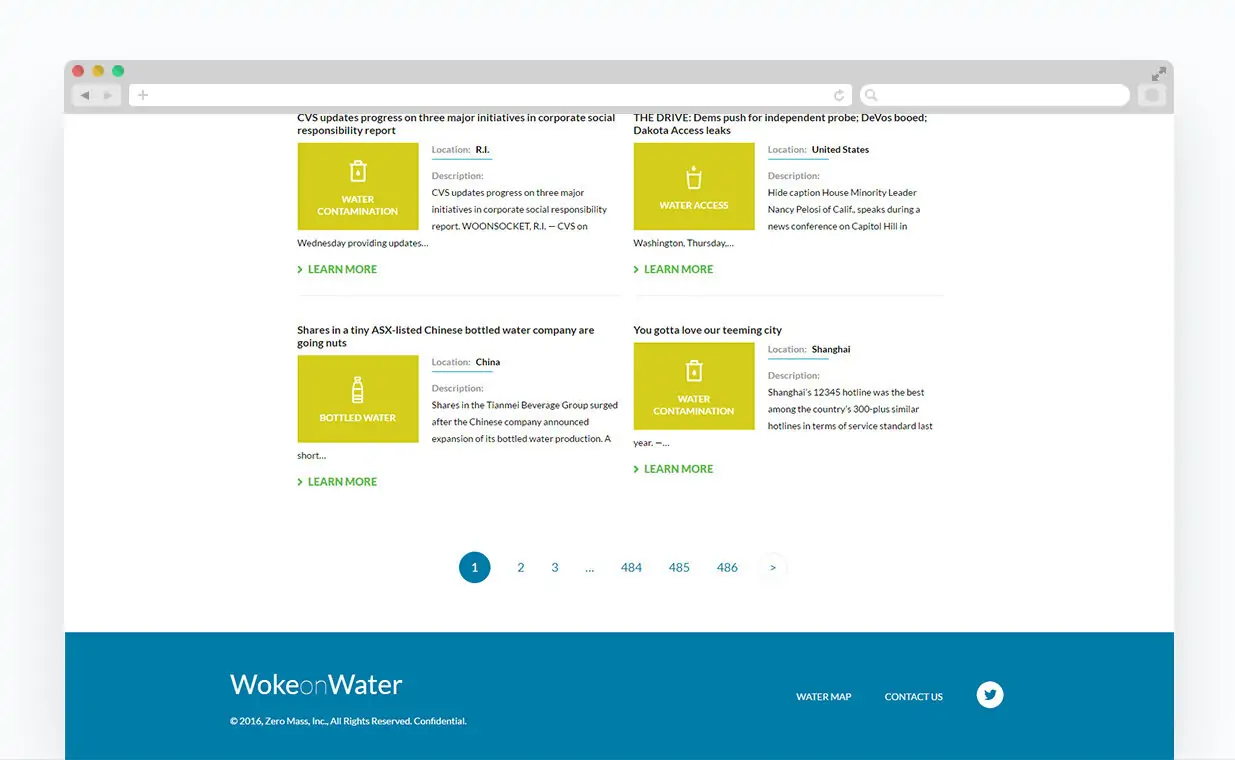 Water scarcity is a huge and ever increasing problem facing the United States and the world. The WokeonWater.org website was created to document water issues such as scarcity, contamination and access. Net-Craft created a website that allows users to search for water problems based on location and water issue.